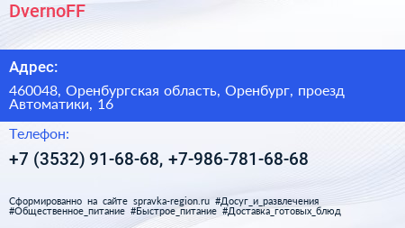 DvernoFF по адресу 460048, Оренбургская область, Оренбург, проезд Автоматики, 16 в дальнейшем Организация, размещена в следующих категориях: