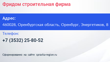Фридом, строительная фирма по адресу 460028, Оренбургская область, Оренбург, Энергетиков, 8 в дальнейшем Организация, размещена в следующих категориях: