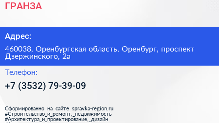 ГРАНЗА по адресу 460038, Оренбургская область, Оренбург, проспект Дзержинского, 2а в дальнейшем Организация, размещена в следующих категориях: