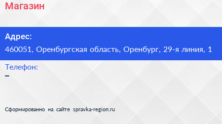 Магазин по адресу 460051, Оренбургская область, Оренбург, 29-я линия, 1 в дальнейшем Организация, размещена в следующих категориях:
