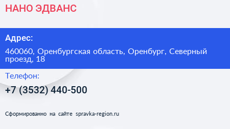 НАНО ЭДВАНС по адресу 460060, Оренбургская область, Оренбург, Северный проезд, 18 в дальнейшем Организация, размещена в следующих категориях: