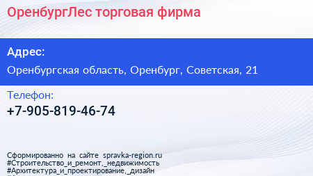 ОренбургЛес, торговая фирма по адресу Оренбургская область, Оренбург, Советская, 21 в дальнейшем Организация, размещена в следующих категориях: