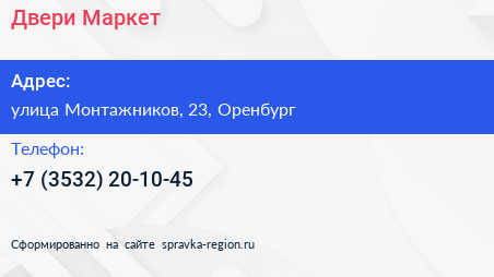 Двери Маркет по адресу улица Монтажников, 23, Оренбург в дальнейшем Организация, размещена в следующих категориях: