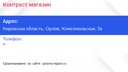 Контраст, магазин по адресу Кировская область, Орлов, Комсомольская, 3а в дальнейшем Организация, размещена в следующих категориях: