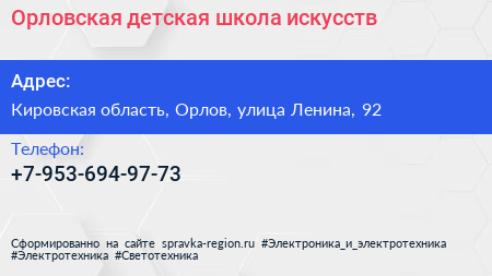 Орловская детская школа искусств по адресу Кировская область, Орлов, улица Ленина, 92 в дальнейшем Организация, размещена в следующих категориях: