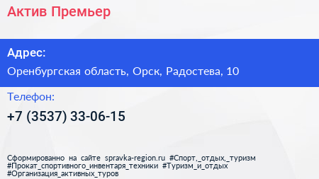 Актив Премьер по адресу Оренбургская область, Орск, Радостева, 10 в дальнейшем Организация, размещена в следующих категориях: