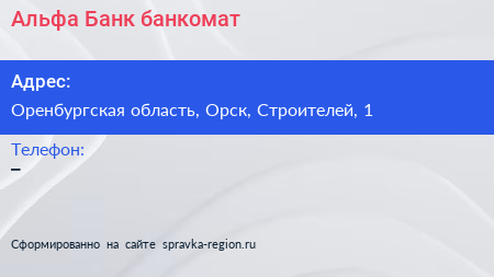 Альфа-Банк, банкомат по адресу Оренбургская область, Орск, Строителей, 1 в дальнейшем Организация, размещена в следующих категориях: