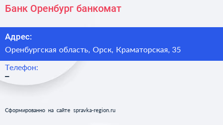 Банк Оренбург, банкомат по адресу Оренбургская область, Орск, Краматорская, 35 в дальнейшем Организация, размещена в следующих категориях: