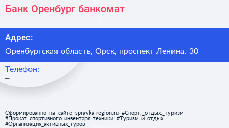 Банк Оренбург, банкомат по адресу Оренбургская область, Орск, проспект Ленина, 30 в дальнейшем Организация, размещена в следующих категориях: