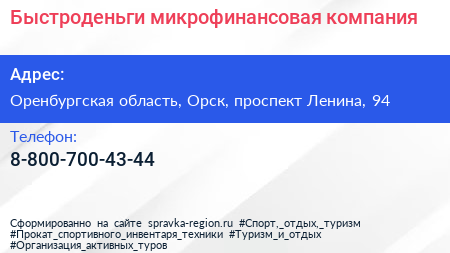 Быстроденьги, микрофинансовая компания по адресу Оренбургская область, Орск, проспект Ленина, 94 в дальнейшем Организация, размещена в следующих категориях: