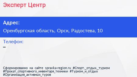 Эксперт-Центр по адресу Оренбургская область, Орск, Радостева, 10 в дальнейшем Организация, размещена в следующих категориях: