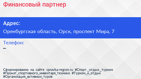 Финансовый партнер по адресу Оренбургская область, Орск, проспект Мира, 7 в дальнейшем Организация, размещена в следующих категориях: