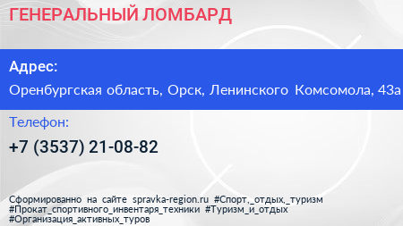 ГЕНЕРАЛЬНЫЙ ЛОМБАРД по адресу Оренбургская область, Орск, Ленинского Комсомола, 43а в дальнейшем Организация, размещена в следующих категориях: