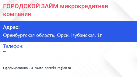 ГОРОДСКОЙ ЗАЙМ, микрокредитная компания по адресу Оренбургская область, Орск, Кубанская, 1г в дальнейшем Организация, размещена в следующих категориях: