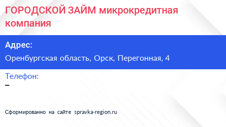 ГОРОДСКОЙ ЗАЙМ, микрокредитная компания по адресу Оренбургская область, Орск, Перегонная, 4 в дальнейшем Организация, размещена в следующих категориях: