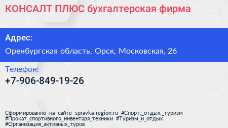 КОНСАЛТ ПЛЮС, бухгалтерская фирма по адресу Оренбургская область, Орск, Московская, 26 в дальнейшем Организация, размещена в следующих категориях: