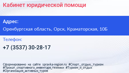Кабинет юридической помощи по адресу Оренбургская область, Орск, Краматорская, 10Б в дальнейшем Организация, размещена в следующих категориях: