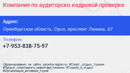 Компания по аудиторско-кадровой проверке по адресу Оренбургская область, Орск, проспект Ленина, 67 в дальнейшем Организация, размещена в следующих категориях: