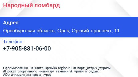 Народный ломбард по адресу Оренбургская область, Орск, Орский проспект, 11 в дальнейшем Организация, размещена в следующих категориях: