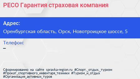 РЕСО-Гарантия, страховая компания по адресу Оренбургская область, Орск, Новотроицкое шоссе, 5 в дальнейшем Организация, размещена в следующих категориях: