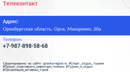 Телеконтакт по адресу Оренбургская область, Орск, Макаренко, 20а в дальнейшем Организация, размещена в следующих категориях:
