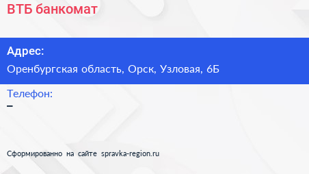 ВТБ, банкомат по адресу Оренбургская область, Орск, Узловая, 6Б в дальнейшем Организация, размещена в следующих категориях: