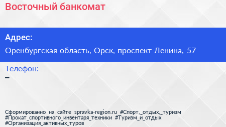 Восточный, банкомат по адресу Оренбургская область, Орск, проспект Ленина, 57 в дальнейшем Организация, размещена в следующих категориях: