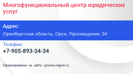 Многофункциональный центр юридических услуг по адресу Оренбургская область, Орск, Просвещения, 34 в дальнейшем Организация, размещена в следующих категориях: