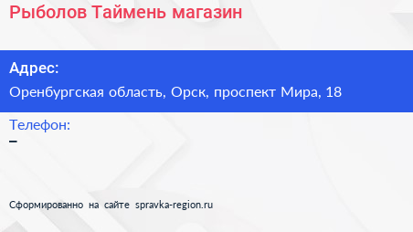 Рыболов-Таймень, магазин по адресу Оренбургская область, Орск, проспект Мира, 18 в дальнейшем Организация, размещена в следующих категориях: