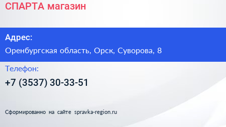 СПАРТА, магазин по адресу Оренбургская область, Орск, Суворова, 8 в дальнейшем Организация, размещена в следующих категориях: