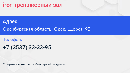 iron, тренажерный зал по адресу Оренбургская область, Орск, Щорса, 9Б в дальнейшем Организация, размещена в следующих категориях: