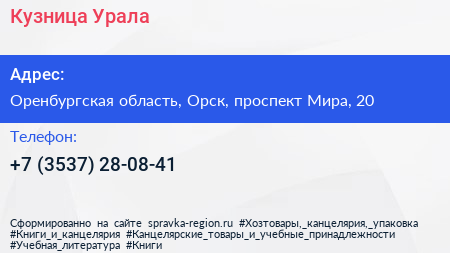 Кузница Урала по адресу Оренбургская область, Орск, проспект Мира, 20 в дальнейшем Организация, размещена в следующих категориях: