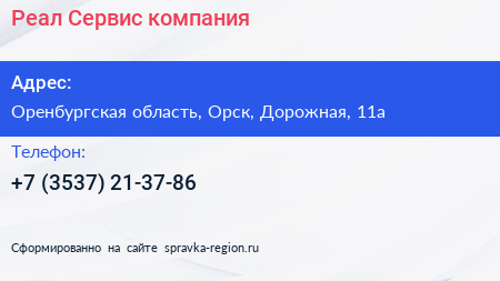 Реал-Сервис, компания по адресу Оренбургская область, Орск, Дорожная, 11а в дальнейшем Организация, размещена в следующих категориях: