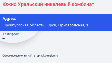 Южно-Уральский никелевый комбинат по адресу Оренбургская область, Орск, Призаводская, 1 в дальнейшем Организация, размещена в следующих категориях: