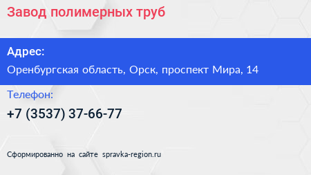 Завод полимерных труб по адресу Оренбургская область, Орск, проспект Мира, 14 в дальнейшем Организация, размещена в следующих категориях: