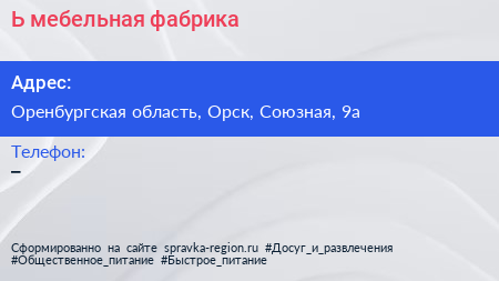 Ь, мебельная фабрика по адресу Оренбургская область, Орск, Союзная, 9а в дальнейшем Организация, размещена в следующих категориях: