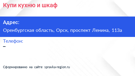 Купи кухню и шкаф по адресу Оренбургская область, Орск, проспект Ленина, 113а в дальнейшем Организация, размещена в следующих категориях: