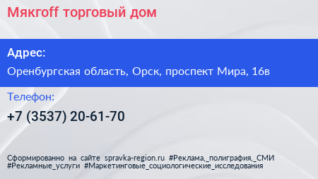 Мякгоff, торговый дом по адресу Оренбургская область, Орск, проспект Мира, 16в в дальнейшем Организация, размещена в следующих категориях: