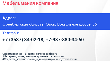 Мебельмания, компания по адресу Оренбургская область, Орск, Вокзальное шоссе, 36 в дальнейшем Организация, размещена в следующих категориях: