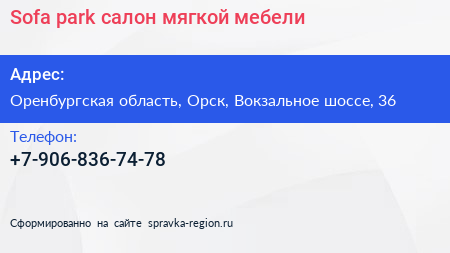 Sofa park, салон мягкой мебели по адресу Оренбургская область, Орск, Вокзальное шоссе, 36 в дальнейшем Организация, размещена в следующих категориях: