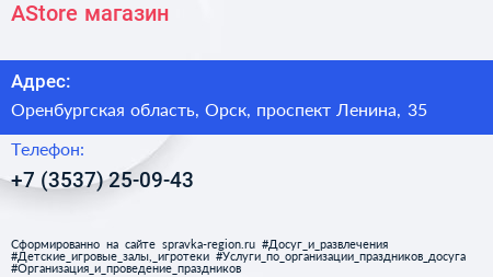 AStore, магазин по адресу Оренбургская область, Орск, проспект Ленина, 35 в дальнейшем Организация, размещена в следующих категориях: