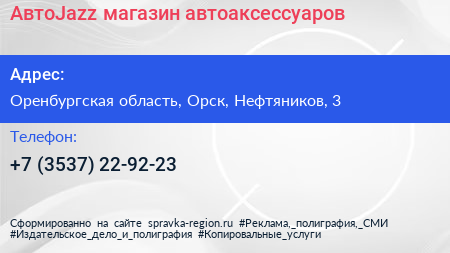 АвтоJazz, магазин автоаксессуаров по адресу Оренбургская область, Орск, Нефтяников, 3 в дальнейшем Организация, размещена в следующих категориях: