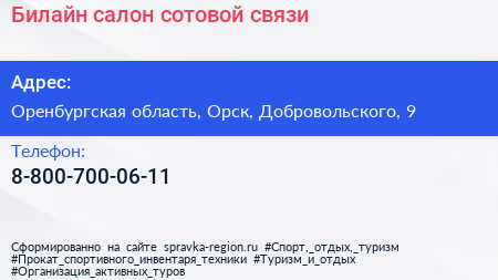Билайн, салон сотовой связи по адресу Оренбургская область, Орск, Добровольского, 9 в дальнейшем Организация, размещена в следующих категориях: