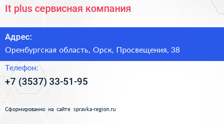 It plus, сервисная компания по адресу Оренбургская область, Орск, Просвещения, 38 в дальнейшем Организация, размещена в следующих категориях: