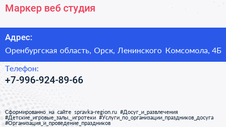 Маркер, веб-студия по адресу Оренбургская область, Орск, Ленинского Комсомола, 4Б в дальнейшем Организация, размещена в следующих категориях: