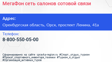 МегаФон, сеть салонов сотовой связи по адресу Оренбургская область, Орск, проспект Ленина, 41а в дальнейшем Организация, размещена в следующих категориях: