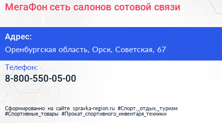 МегаФон, сеть салонов сотовой связи по адресу Оренбургская область, Орск, Советская, 67 в дальнейшем Организация, размещена в следующих категориях: