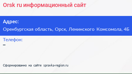 Orsk.ru, информационный сайт по адресу Оренбургская область, Орск, Ленинского Комсомола, 4Б в дальнейшем Организация, размещена в следующих категориях: