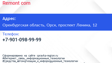 Remont.com по адресу Оренбургская область, Орск, проспект Ленина, 12 в дальнейшем Организация, размещена в следующих категориях: