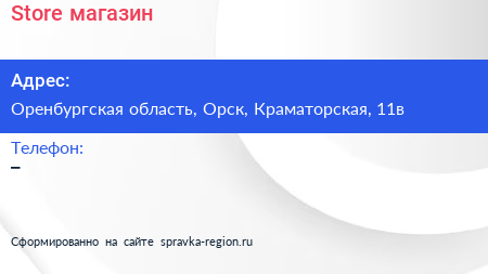 Store, магазин по адресу Оренбургская область, Орск, Краматорская, 11в в дальнейшем Организация, размещена в следующих категориях: